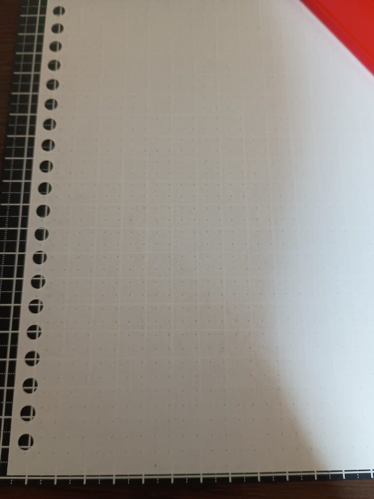 私はあんまりお金がないので、コピー用紙にドット方眼を自分で印刷して、穴開けて、紐で綴じていました